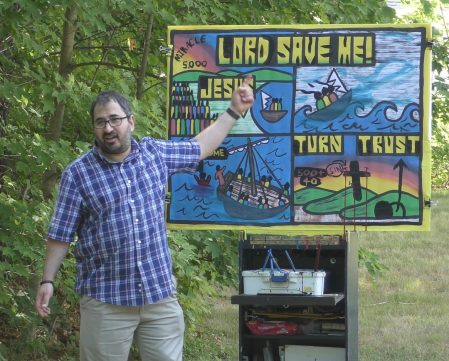 He wanted me to share a Biblical message using my paint-board. I typically don’t do that for a Sunday-morning service, but if that’s what he wanted, I was willing to give it a go. He wanted the congregation to see what a Kids Bible Club would look like, and I was happy to oblige.