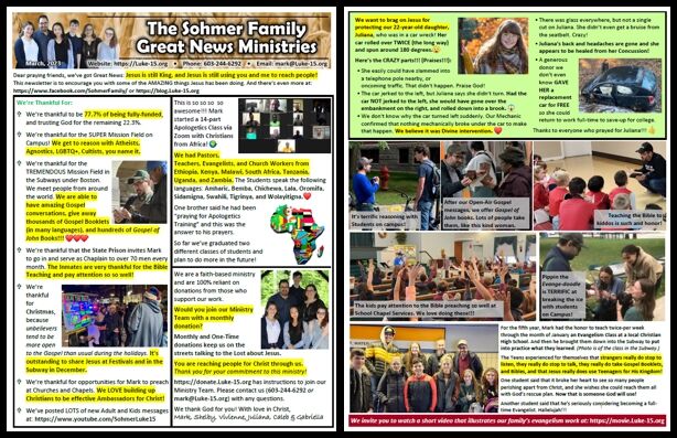 Thank you so much for your prayers, financial support, and notes of encouragement, without which we would not be able to reach the Lost for Jesus Christ!